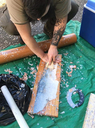 From the outset, the weekend is highly practical. Participants begin by learning how to properly flesh and descale the skins, removing residual tissue and preparing the surface for tanning. Instruction includes both modern and traditional scraping techniques, offering insight into how these processes have been carried out across cultures and time periods.