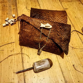 The Salmon Fish Skin Tanning Weekend offers a rare and fascinating opportunity to work with one of the most remarkable natural materials available. Under the guidance of highly experienced instructors, participants explore the transformation of raw salmon skins into a strong, supple, and highly durable leather, prized historically for both its beauty and performance.