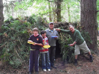 Shelter building forms the foundation of the experience. Instructors introduce key considerations such as site selection, weather protection, warmth, and comfort before families work together to build their own shelter suitable for spending the night.