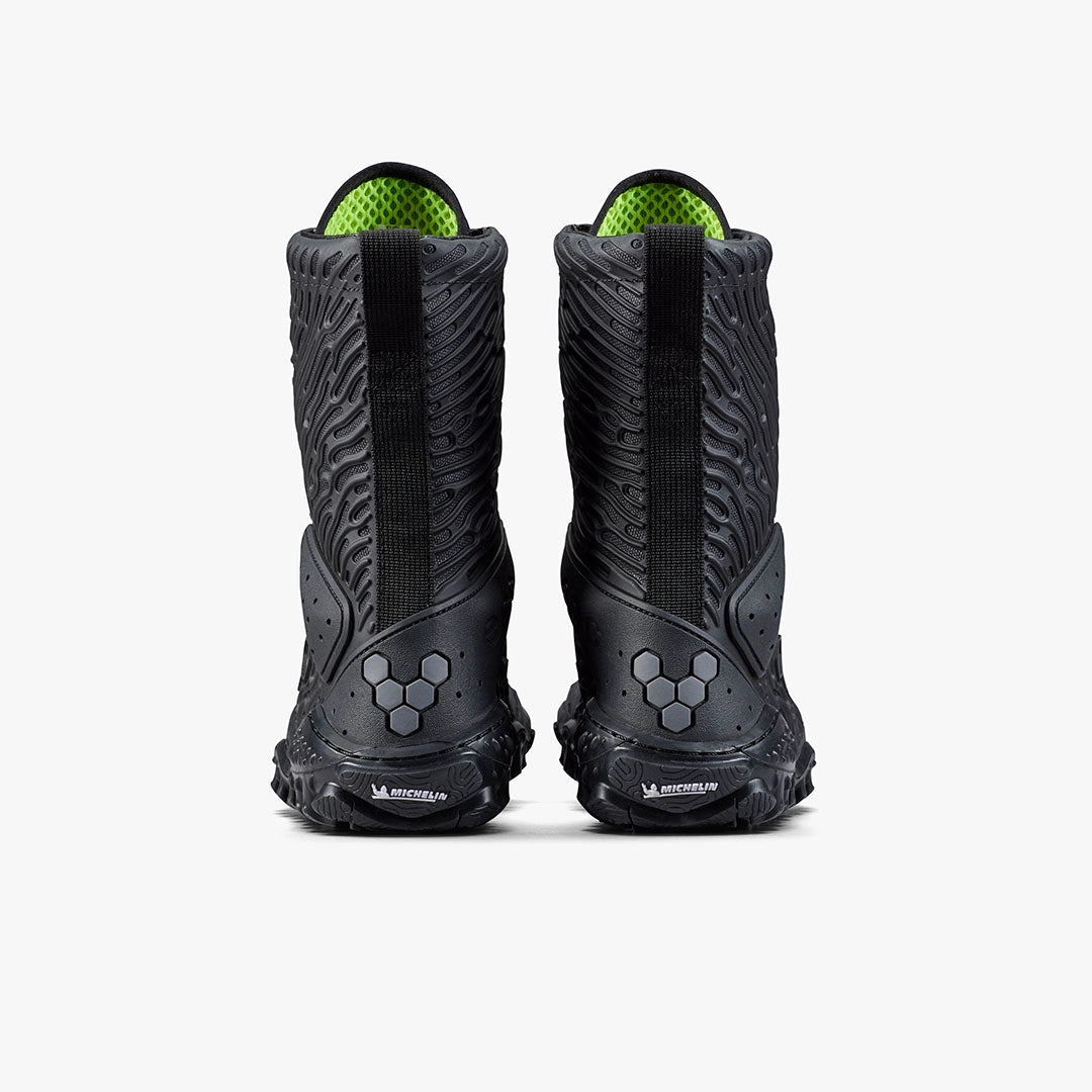 The Jungle ESC is an expedition-grade barefoot boot built for jungle exploration. It dries and drains rapidly for moisture management, and features corrosion-resistant brass hardware. A gusseted tongue helps block hazardous flora and fauna, complemented by a high-vis fluro lining for easy detection. The Michelin sole is our wildest yet, with an oversized heel lug for emergency braking on slippery surfaces. The protective, bio-inspired overlay offers high durability, without compromising breathability or mobility. Laces supplied are long, allowing you to tuck them in, or wrap them around the cuff for extra protection from leeches. And everything is crafted with synthetic, vegan* materials, selected for their resistance to decomposition in hot, humid environments.