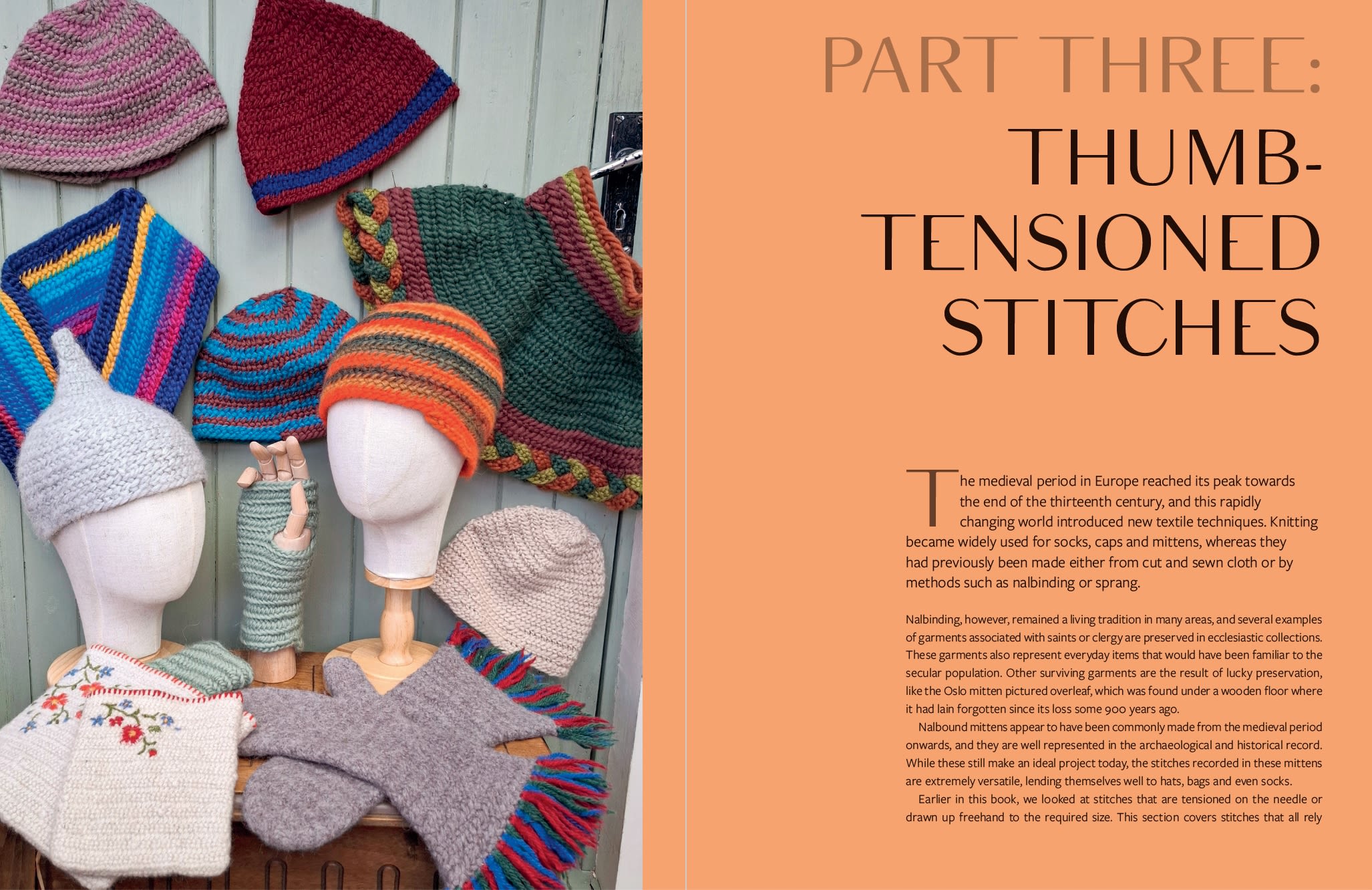 Nalbinding – loop-manipulated textiles that use just a single needle – can be traced as far back as the Mesolithic period and is still popular in Scandinavia. The results of the various techniques can resemble wool knitting or be worked as an open mesh akin to netting; it can be dense and warm or light and airy; and can use thick woollen yarns or be worked in thin, smooth plant fibres.