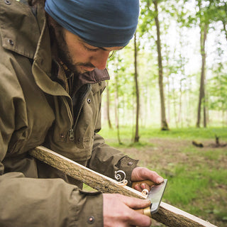 Upon arrival at camp and following an initial safety brief, you are issued with your own Bushcraft Knife for the day which you will use to process the various materials we will need for everyday woodland tasks. We'll show you how to use these tools safely and efficiently, bringing your future projects to life with ease.