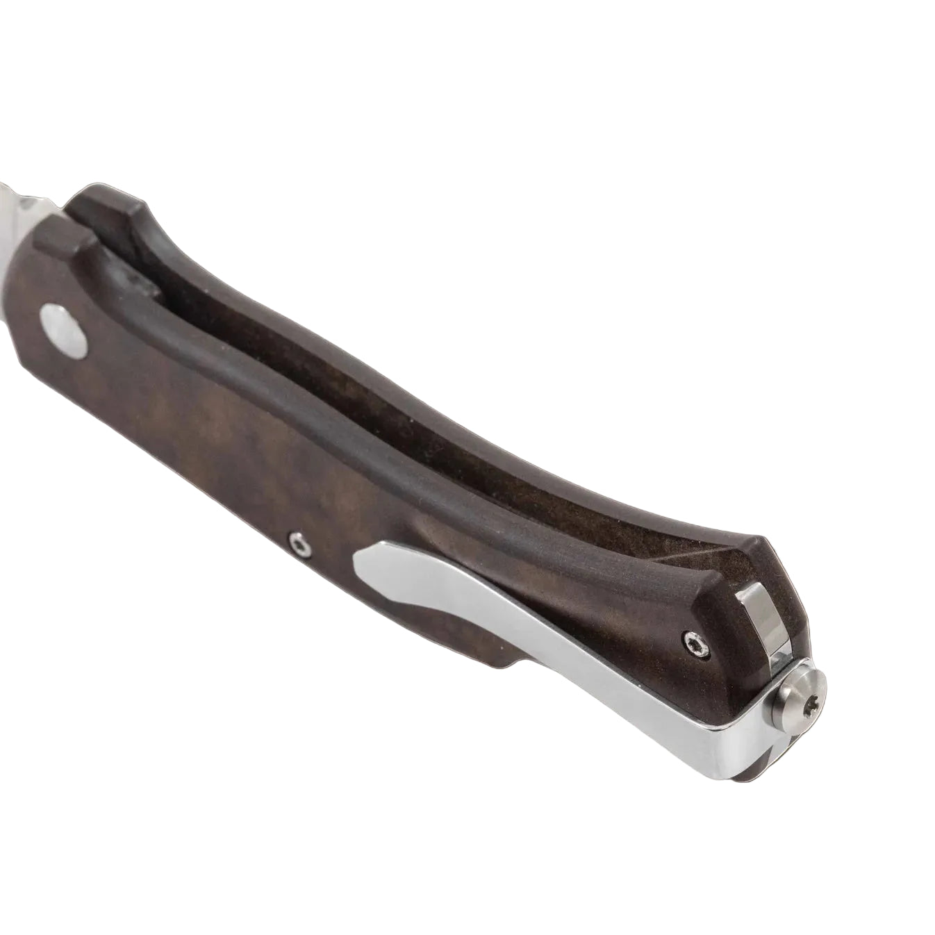 • Distinct Style The robust paper-composite handle is complemented by a secure pocket clip, making this knife as beautiful as it is functional.