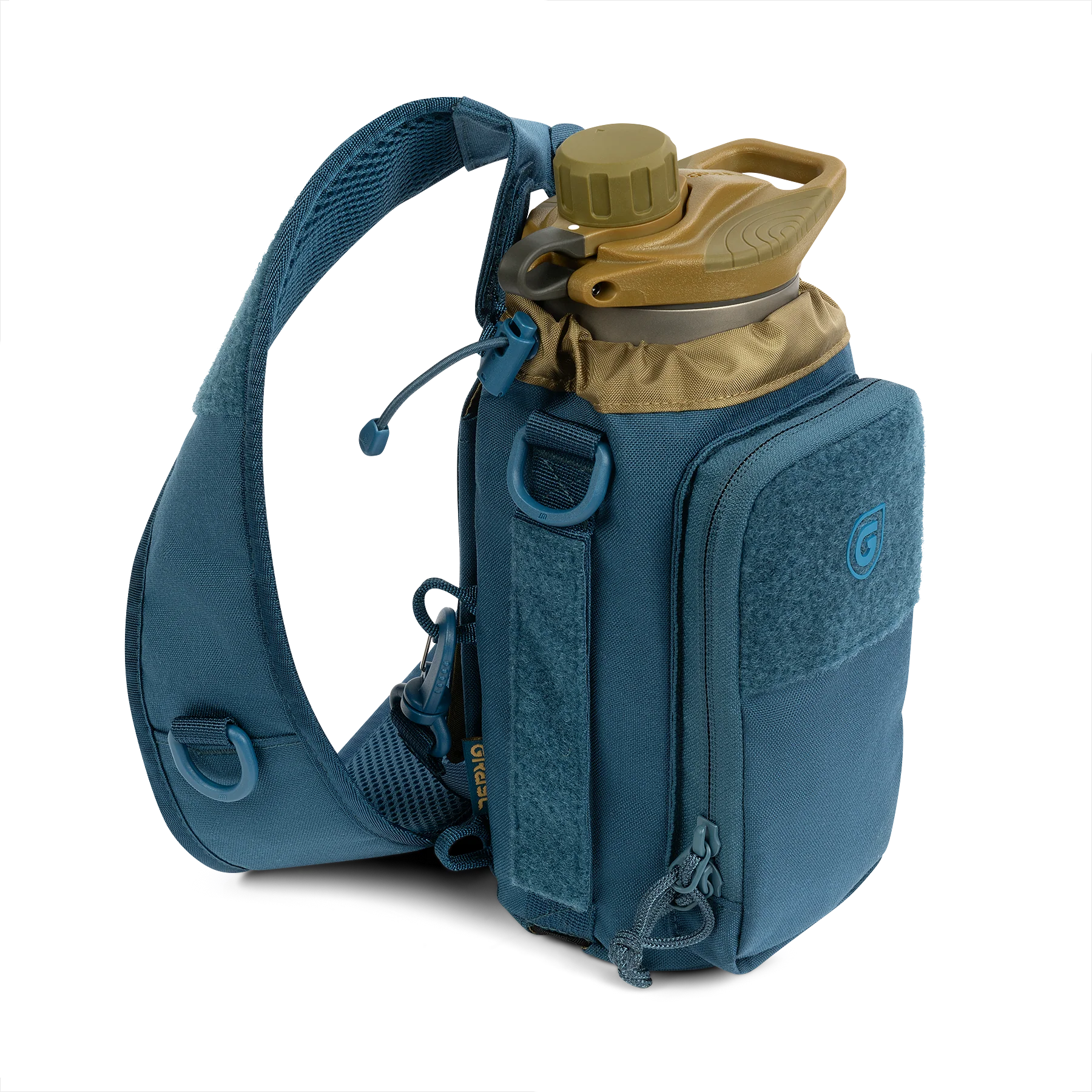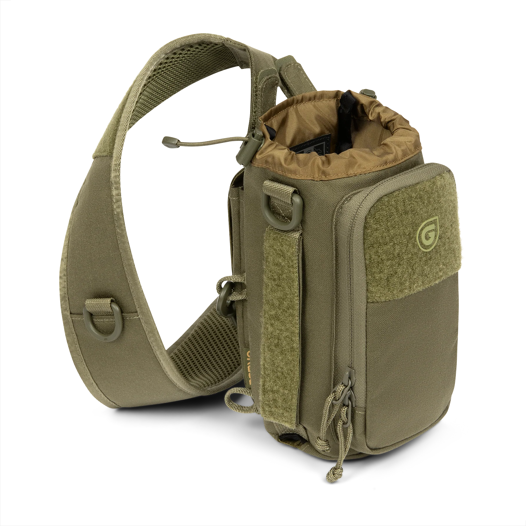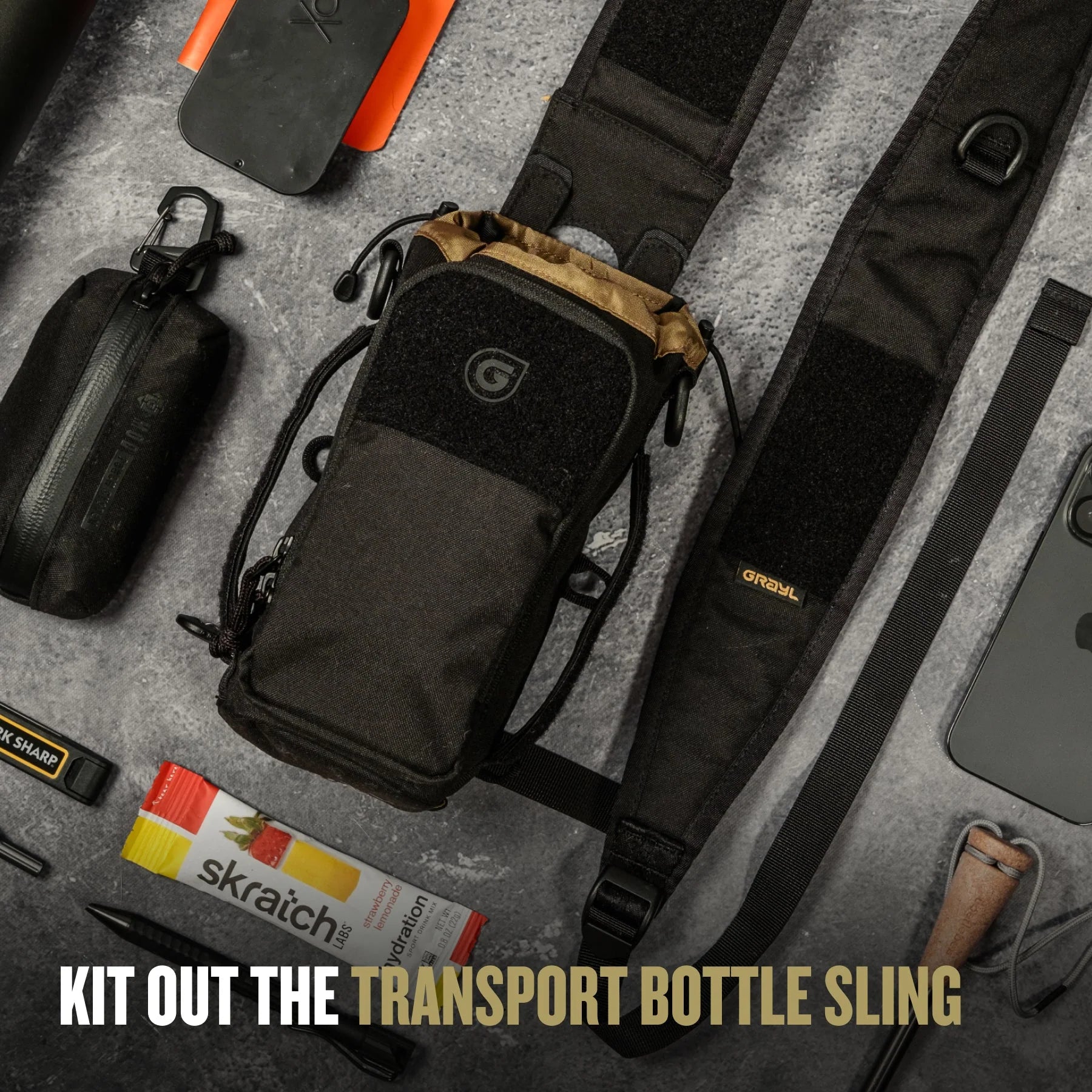 The Transport Bottle Sling is designed to comfortably carry any Grayl® filter or purifier bottle or any 32-40oz water bottle. Dual cinch top closures keep your bottle secure while on the move. It's adjustable for left/right or front/back and it has multiple shoulder strap clip-in points to adjust the way your bottles lies on your back or front-side. It’s large full zip front pocket is designed to for a smartphone or other essentials. It has dual carry handles with top facing velcro to expand and attach G-Mods Accessory Pouches. Dual options also available for the removable shoulder strap.